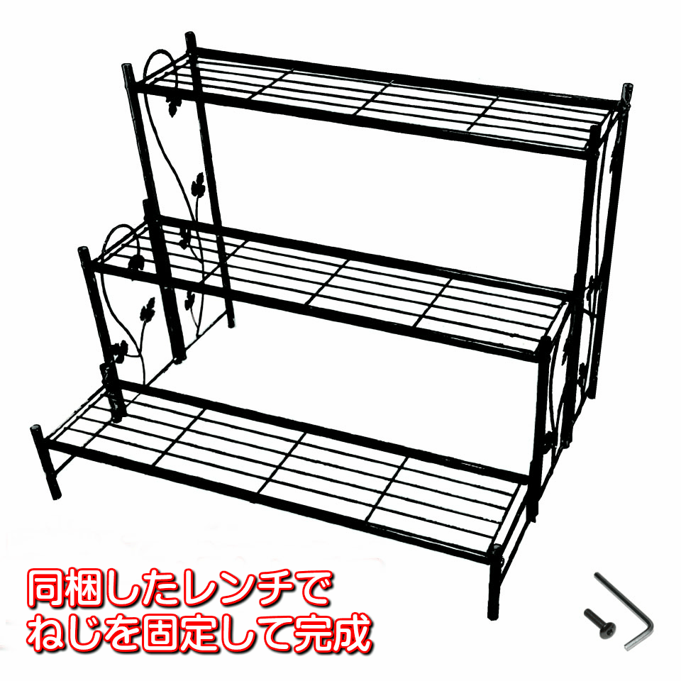フラワースタンド アイアンラック3段 (ブラック) 組み立て簡単 落ち着く花台 インテリア おしゃれ PSG10-BK